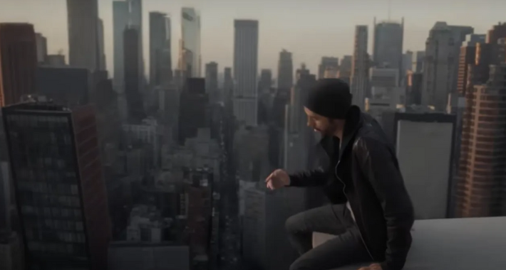 La publicación muestra al español sentado en una plataforma en un estudio de grabación con un fondo verde (chroma key) mientras los productores hacen la magia recreando una escena en la que Iglesias se ve triste en una terraza desde la que se pueden ver unos ‘rascacielos’.